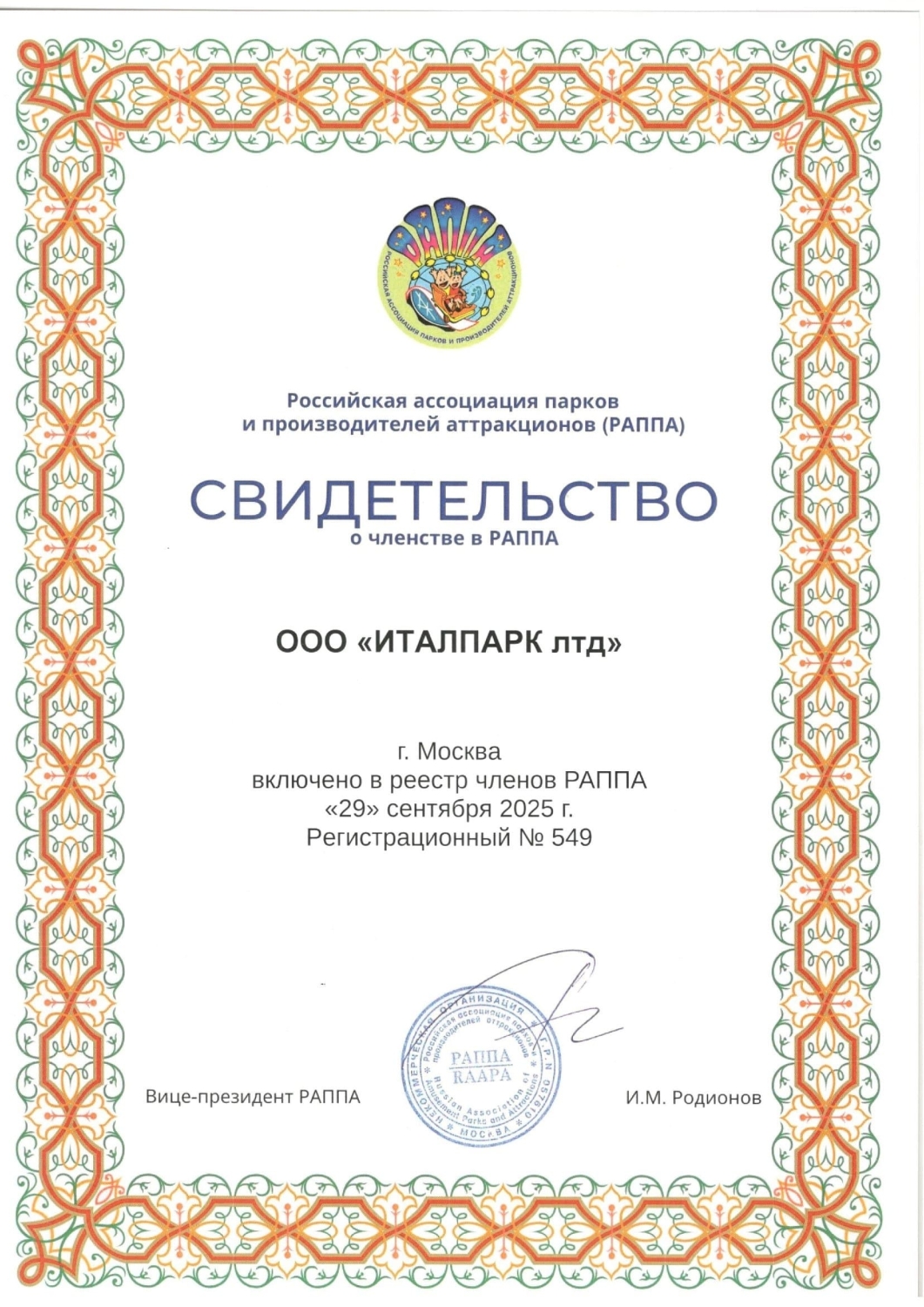 Свидетельство 29.09.2025