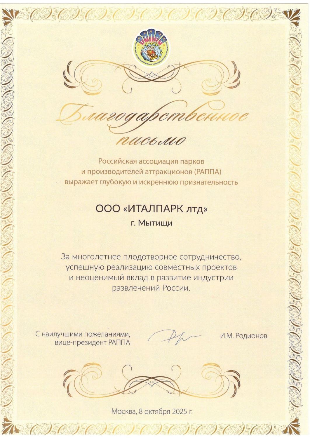Благодарственное письмо 8 октября 2025