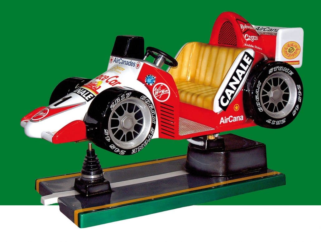 Детский аттракцион RaceCar_Art570 – качалка для малышей в возрасте от 2 до 7 лет в виде настоящего гоночного болида. Машинка ярко раскрашена и украшена узнаваемыми рекламными надписями и логотипами. Сиденье широкое, на нем можно разместиться одному или вдвоем с приятелем. Приборная доска интерактивная. Поездка сопровождается звуковыми и световыми эффектами. Аттракцион компактный, слот для монет встроен в саму машинку, так что места для размещения требуется совсем немного. Эту качалку можно установить в любом открытом парке или крытом развлекательном центре.