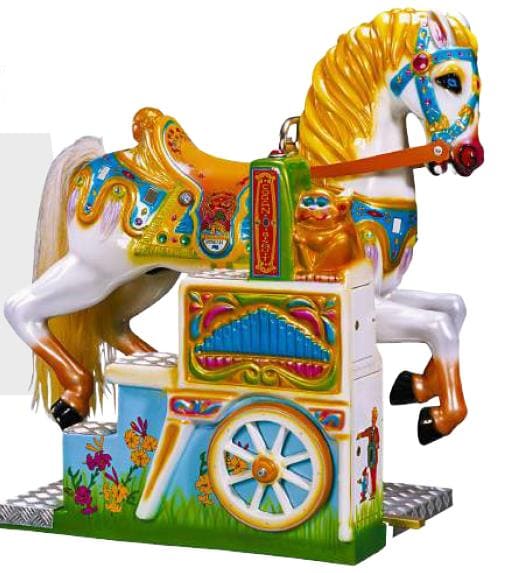 Детский аттракцион ViennaCogan 140 – качалка для малышей в возрасте от 2 до 7 лет в виде красивой лошадки с ярмарочной тележкой. Все наружные части качалки изготовлены из прочного пластика и красочно раскрашены нетоксичными и износостойкими красками. Чтобы взбираться на лошадку, предусмотрены ступеньки. Сидеть удобно в седле, а для безопасности есть ручка и подножки. Поездка сопровождается приятными мелодиями. Аттракцион компактный и очень симпатичный. Отлично смотрится как в крытом развлекательном центре, так и в парке отдыха под открытым небом.