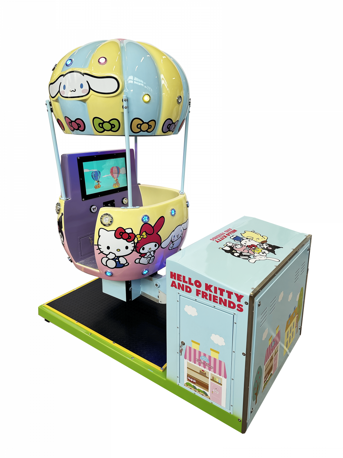 Аттракцион-качалка Hello Kitty Happy Flight — одноместная качалка для детей 2–7 лет, созданная в коллаборации с культовым персонажем Hello Kitty и выполненная в виде воздушного шара. Во время плавного вращения активируются сказочные мелодии, звуковые эффекты волшебства и мерцающая светодиодная подсветка, которая оживает в гривах и рогах животных. Габариты конструкции — 160×90×200 см, что делает ее компактной, но визуально насыщенной. Модель особенно популярна среди девочек, увлеченных тематикой Hello Kitty, и таким образом становится хитом продаж в семейных развлекательных центрах, детских кафе и ТРЦ с акцентом на сбалансированное разнообразие зоны отдыха. Аттракцион работает в автономном режиме, и не требует постоянного контроля оператора.