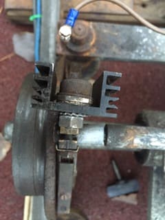 Диодный мост для аттракциона "Детская железная дорога". Устанавливается за железным токосъемным колесом, служит мостом между колесом и токосъемной щеткой. Диод берет ток с колеса, не пропуская его на щетки, для того что бы паравозик стоял на месте, а иллюминационные фонари на поезде горели. Подаваемое напряжение 48V.