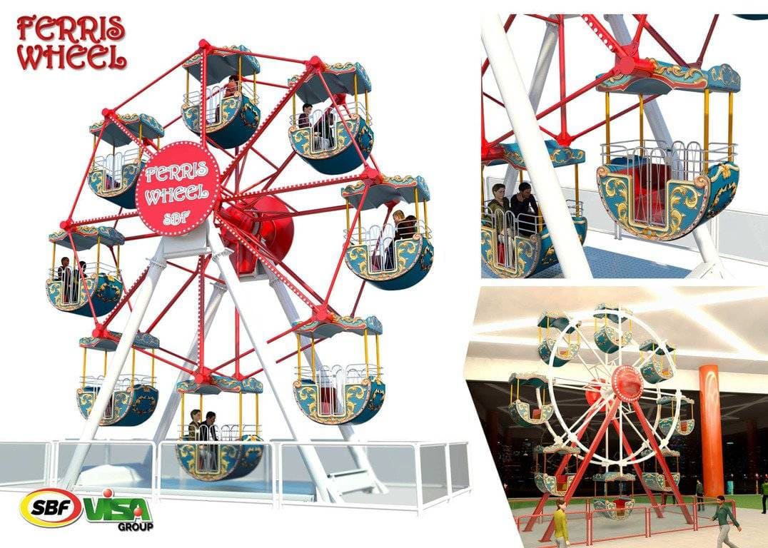 Колесо обозрения Balloon Wheel 10 Mod.708/M приглашает прокатиться на воздушных шарах. Кабинки в форме аэростатов с яркими расписными корзинами рассчитаны на 2 – 4 детей или ребенка в сопровождении взрослого. Прокатиться можно всей семьей. Всего кабинок восемь. Они могут быть открытыми, с металлическими ограждениями, которые не загораживают обзор. Также есть вариант с прозрачными стеклами, сквозь которые также можно наслаждаться открывающимися видами. Вторая разновидность подходит для эксплуатации в любую погоду. На конструкциях аттракциона установлено множество светодиодных лампочек, так что катание проходит со световыми эффектами. Колесо привлекательно выглядит и украсит собой любой парк развлечений.