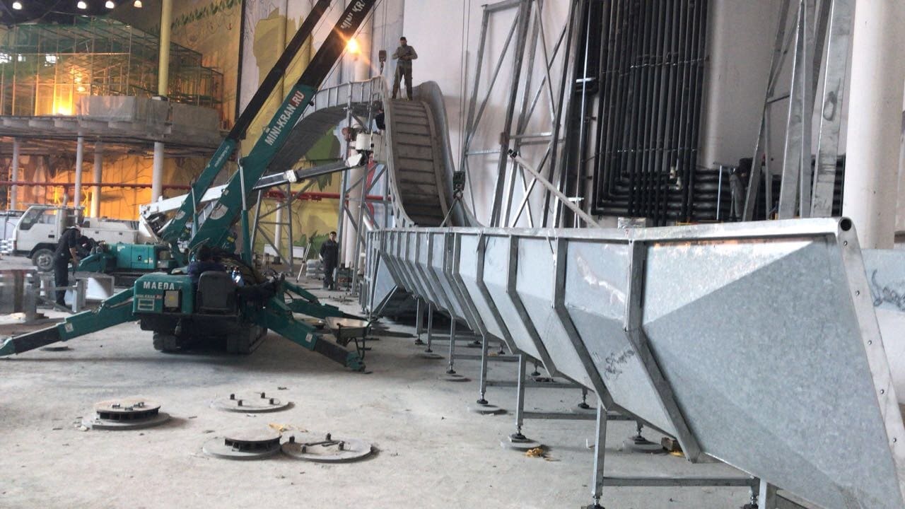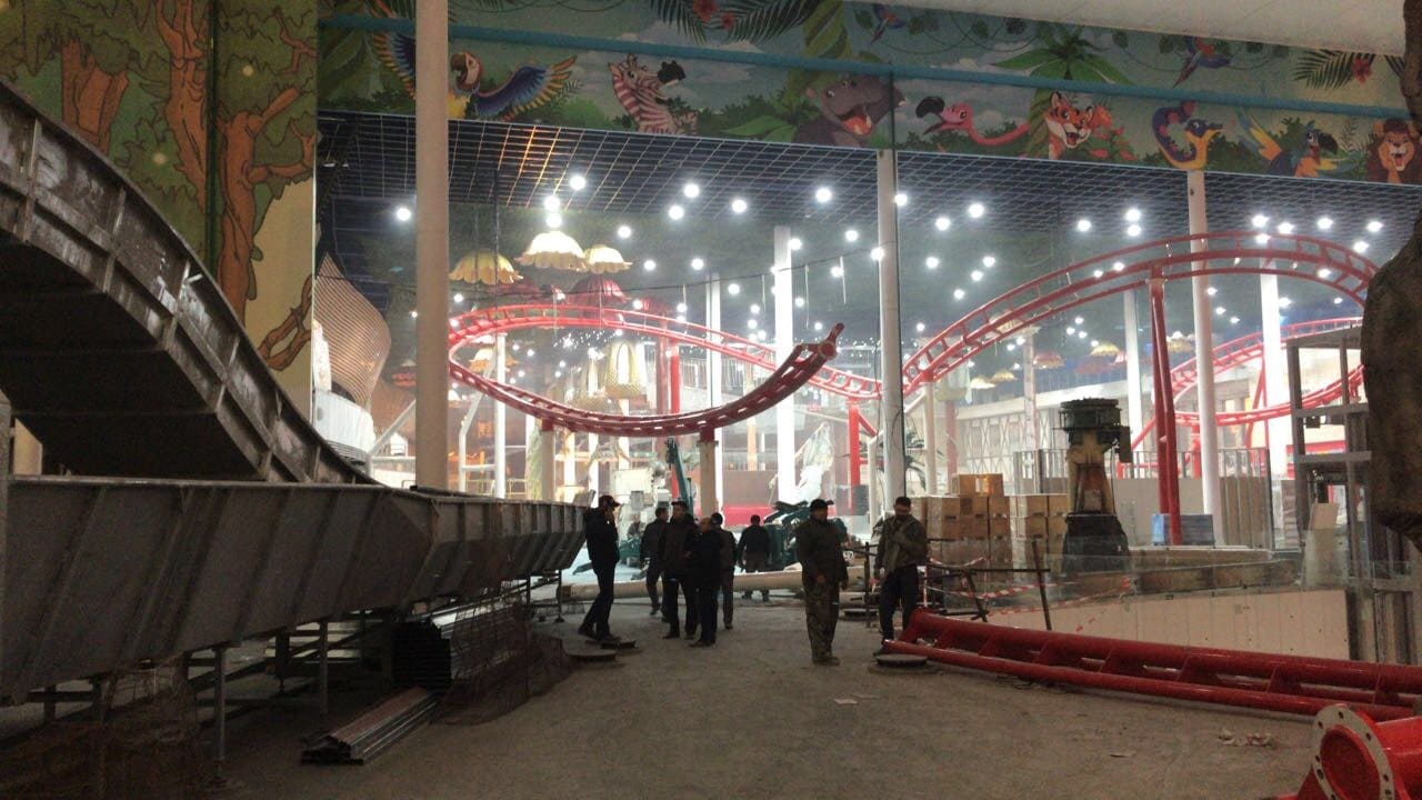 Монтаж американских горок ROLLER COASTER и водного аттракциона FLUME RIDE начался в октябре 2017 г. и длился до января 2018 г., заняв 123 дня. Бригада состояла из 12 квалифицированных и опытных монтажников от Италпарк лтд. Конструкции собирались в закрытом помещении, что усложняло мобильность оборудования. Для складирования деталей возле места установки понадобилась площадь 120 кв.м., для монтажа каждой конструкции – свободная зона в радиусе 15 м от места. Из крупногабаритной техники мы использовали подъемный кран грузоподъемностью 8 т на высоту до 25 м, и на 5 т на высоту до 10 м.