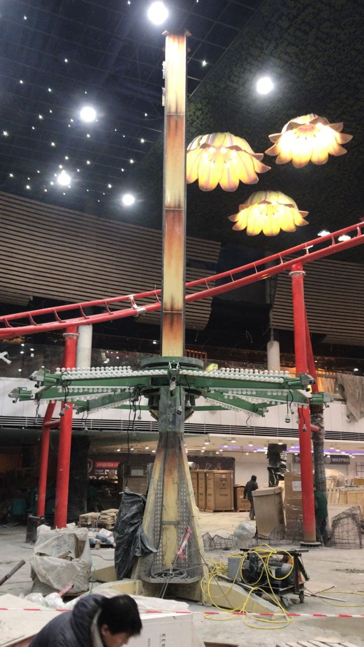 Сложность строительства заключалась в уже ранее смонтированных в торговом центре семейных аттракционах JUNGLE CARROOUSEL и COCO TOWER. Задачей команды Италпарк было совместить все 4 конструкции в единую развлекательную зону, поэтому мы приняли решение проектировать аттракционы специально под ТРЦ. С заказчиком был сделан индивидуальный проект, заключен официальный договор на изготовление, поставку и монтаж. Производство заняло около 14 месяцев.